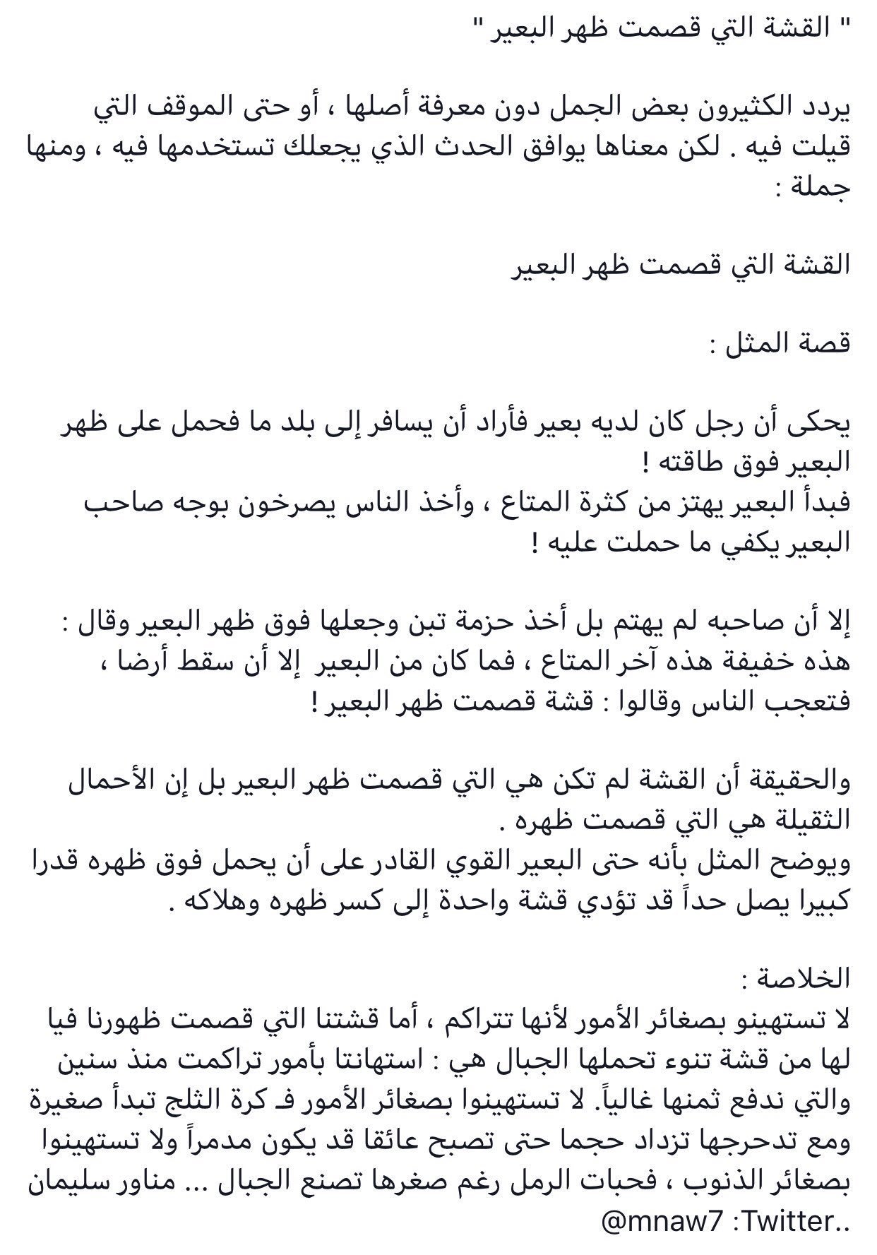 مناور سليمان On Twitter القشه التي قصمت ظهر البعير يردد الكثيرون دون معرفة أصلها وقصتها أو حتى الموقف الذي قيلت فيه إليكم قصة المثل Https T Co A02idshiog