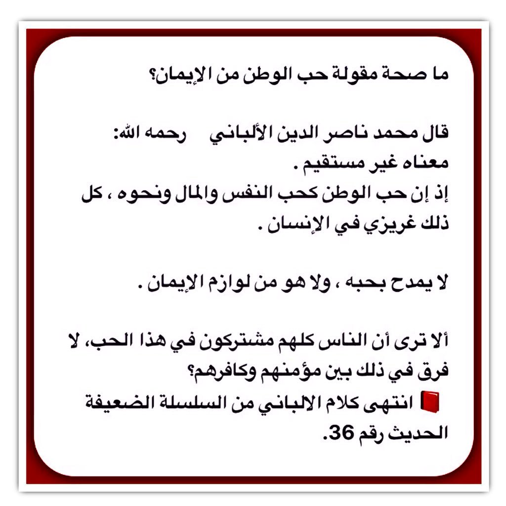 تخريج حديث حب الوطن من الايمان من الأحاديث الضعيفة والباطلة Facebook