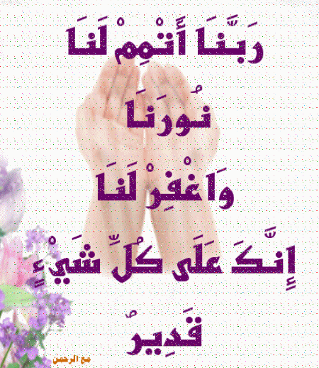 ر ب ن ا أ ت م م ل ن ا ن ور ن ا و اغ ف ر ل ن ا إ ن ك ع ل ى ك ل ش ي ء ق د ير 1. يقولون ربنا أتمم لنا نورنا واغفر لنا إنك على كل شيء قدير قال مجاهد والضحاك والحسن البصري وغيرهم. هذا يقوله المؤمنون حين يرون يوم القيامة نور المنافقين قد طفئ. سورة التحريم تفسير.