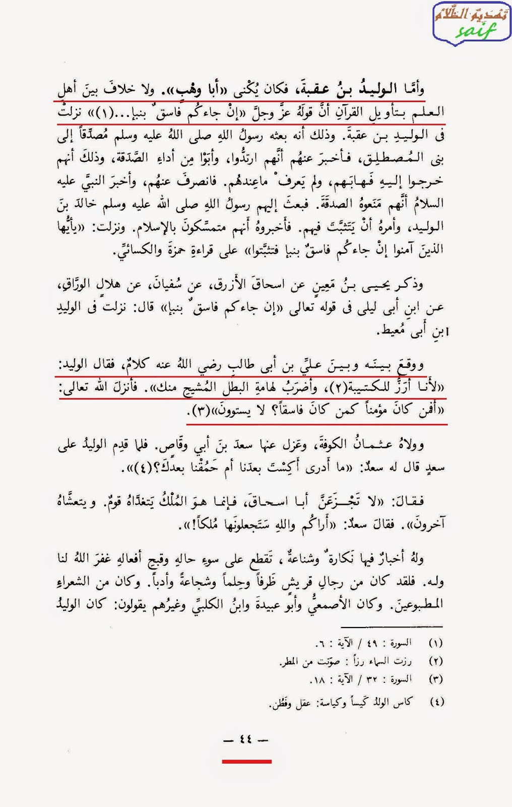 ت ه د يم الظ لام الصحابي الوليد بن عقبة فاسق بأتفاق ائمة اهل السنة والجماعة لكن يجب الترضي عليه