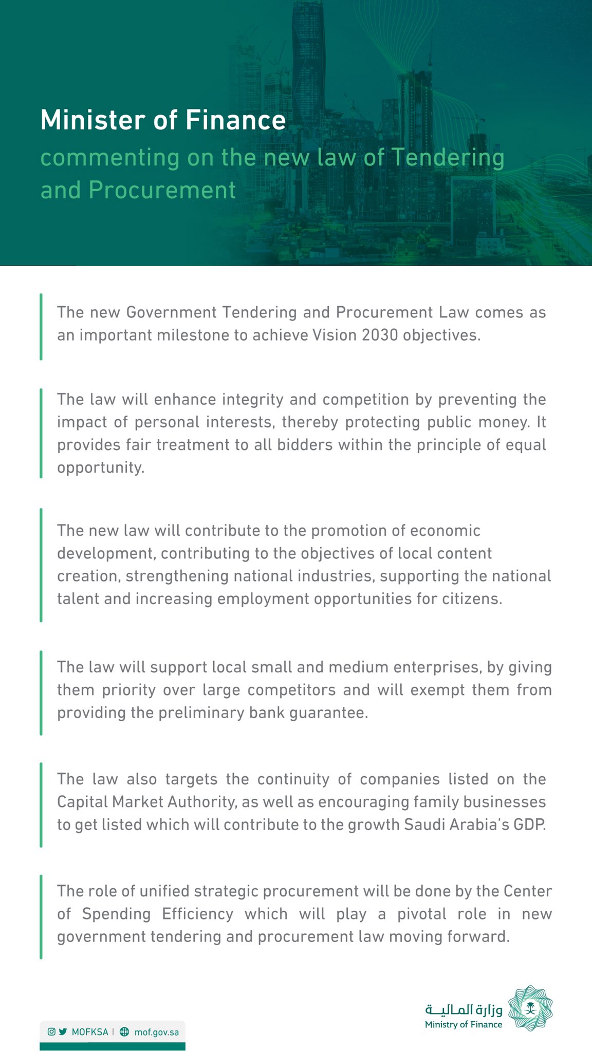 وزارة المالية السعودية On Twitter Minister Of Finance Commenting On The New Law Of Tendering And Procurement